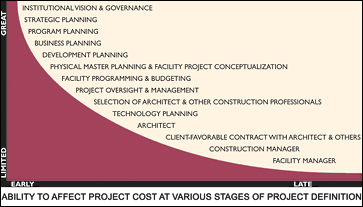Total project cost is often confused with construction cost, which can be as little as half the total. Costs are most effectively controlled at the early stages of planning. Financial modeling can reveal the full impact of a facility project on the operating budget, as well as refining the capital budget.